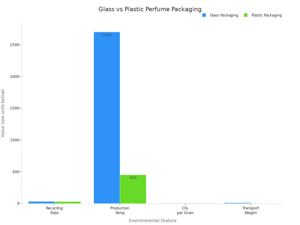 تلاحظ الفرق فورًا عند رؤية زجاجات العطور المعروضة. فسطحها الشفاف الأملس ووزنها يدلان على الجودة والفخامة. هذا التأثير البصري يُشكّل انطباعك الأول، حتى قبل أن تستنشق العطر. يربط العديد من المستهلكين الزجاج بالأناقة والرقي والجمال الخالد. تشعر بالانجذاب نحو المنتجات التي تبدو جميلة وفاخرة، مما يزيد من رغبتك في تجربتها وشرائها.