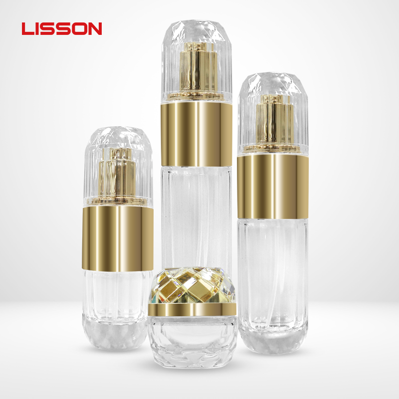 زجاجات مستحضرات تجميل زجاجية فاخرة مع حواف ذهبية
